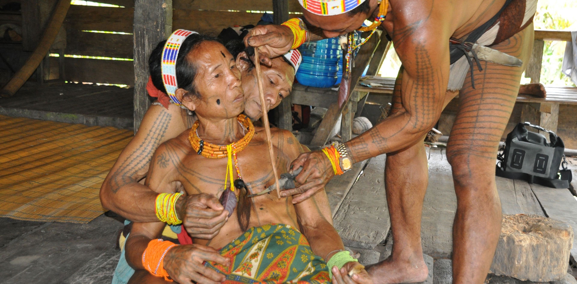 Die Mentawaier schmücken ihre Körper von Kopf bis Fuß mit Tattoos. Sie bemühen sich stets, damit sich die Seele durch Tanz, Gesang und einen schönen Körper bei ihnen wohlfüllt und sie nicht verlässt, was Krankheit oder Tot zu Folge haben könnte.