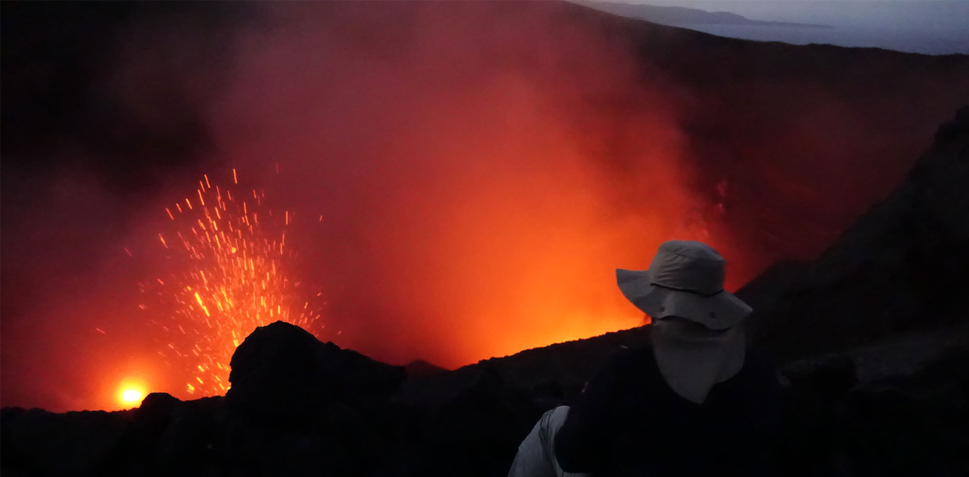 Der Vulkan Yasur auf Tanna auch „Leuchtturm der Südsee“ genannt, ist einer der aktivsten Vulkane auf der Erde und fasziniert durch seine strombolianische Aktivität .